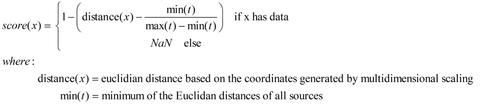 - min(t) is the minimum of the Euclidian distances of all sources of data.